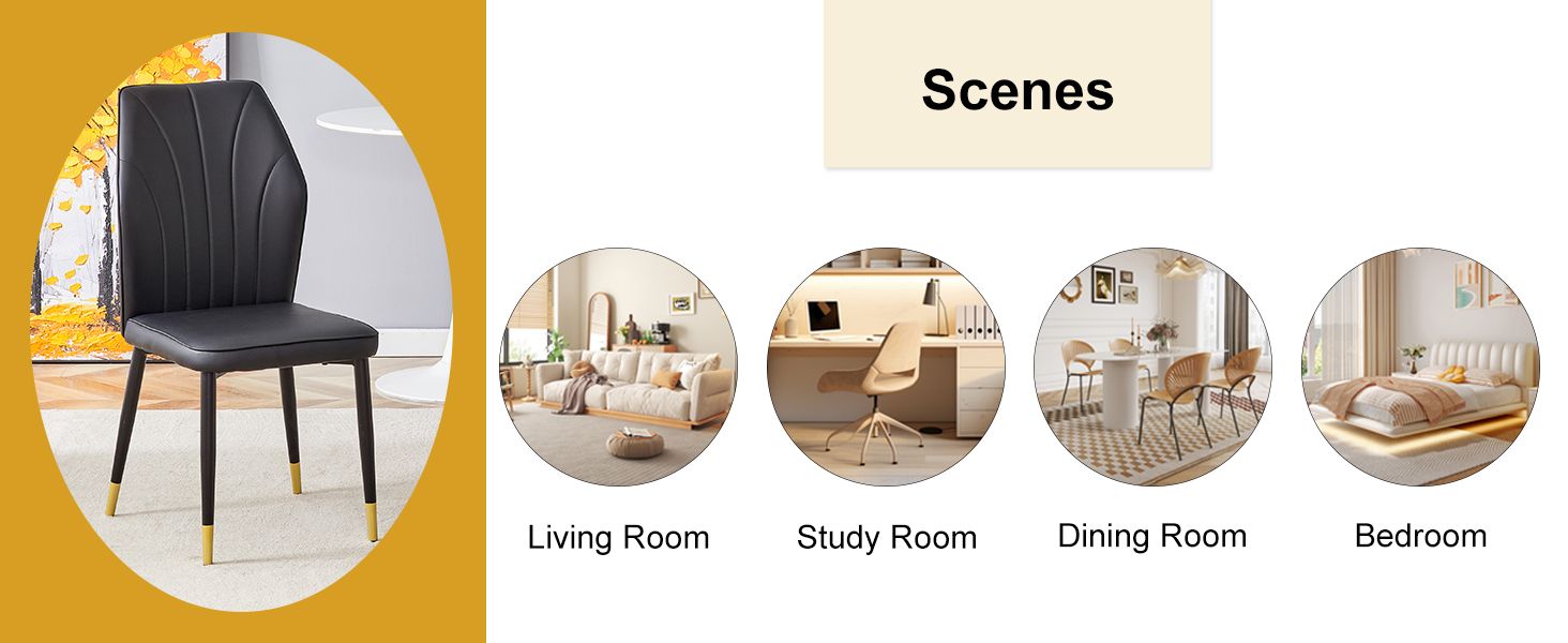 Modern designed dining chair with elegantly curved silhouette and thicken seat cushion provides the chair with maxmium comfort.