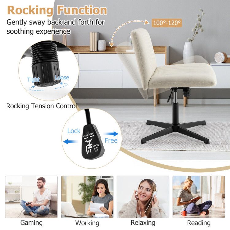 Multiple Adjustable Design: Featuring 120° rocking function, the cross legged chair provides a soothing motion to keep you relaxed and stay focused. The home office chair offers a height range from 17" to 22" and 360° swivel design for customized sitting experience.