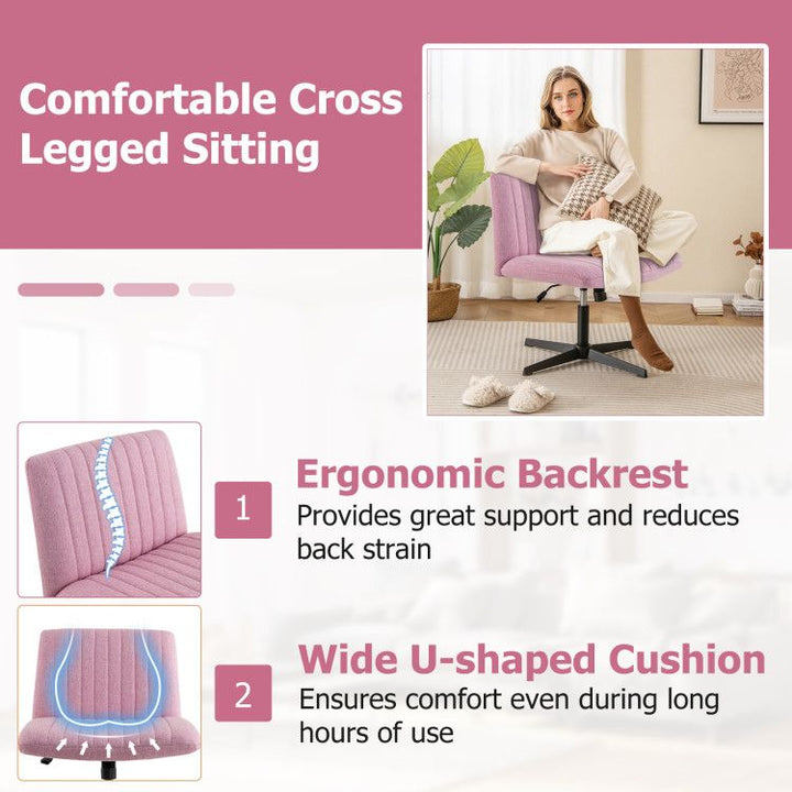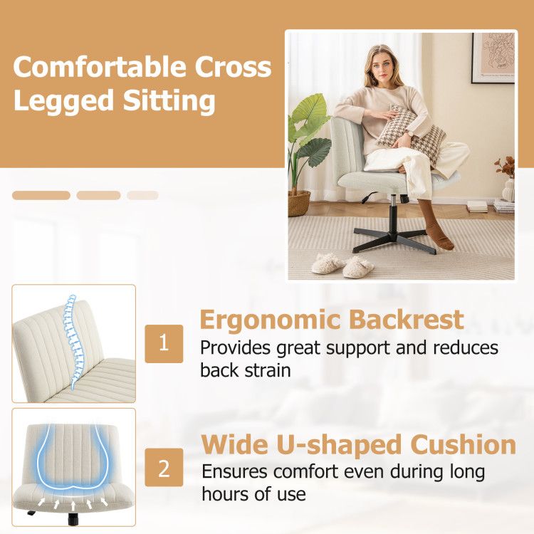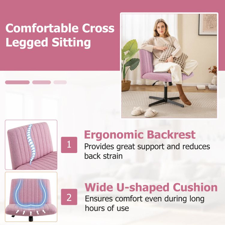Cozy Cross Legged Sitting: The armless desk chair is designed with a wide U-shaped cushion for comfortable cross legged sitting. Additionally, its ergonomic backrest provides great support and reduces back strain.