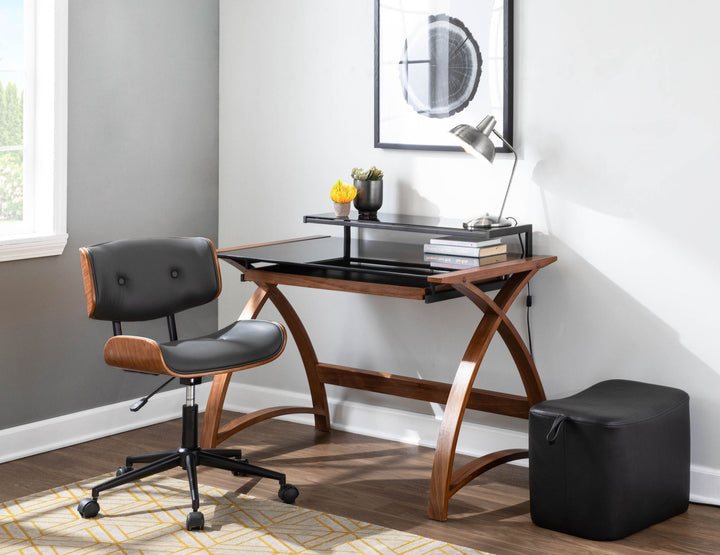 Lombardi Mid-Century Modern Adjustable Office Chair with Swivel in Walnut and Grey by LumiSource