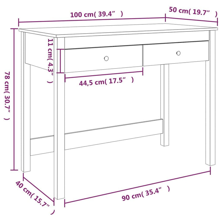 Desk with Drawers 39.4"x19.7"x30.7" Solid Wood Pine