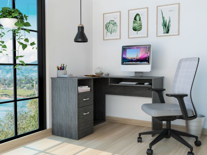 Raleigh L-Shaped Desk; Two Drawers; One Shelf; CPU Storage