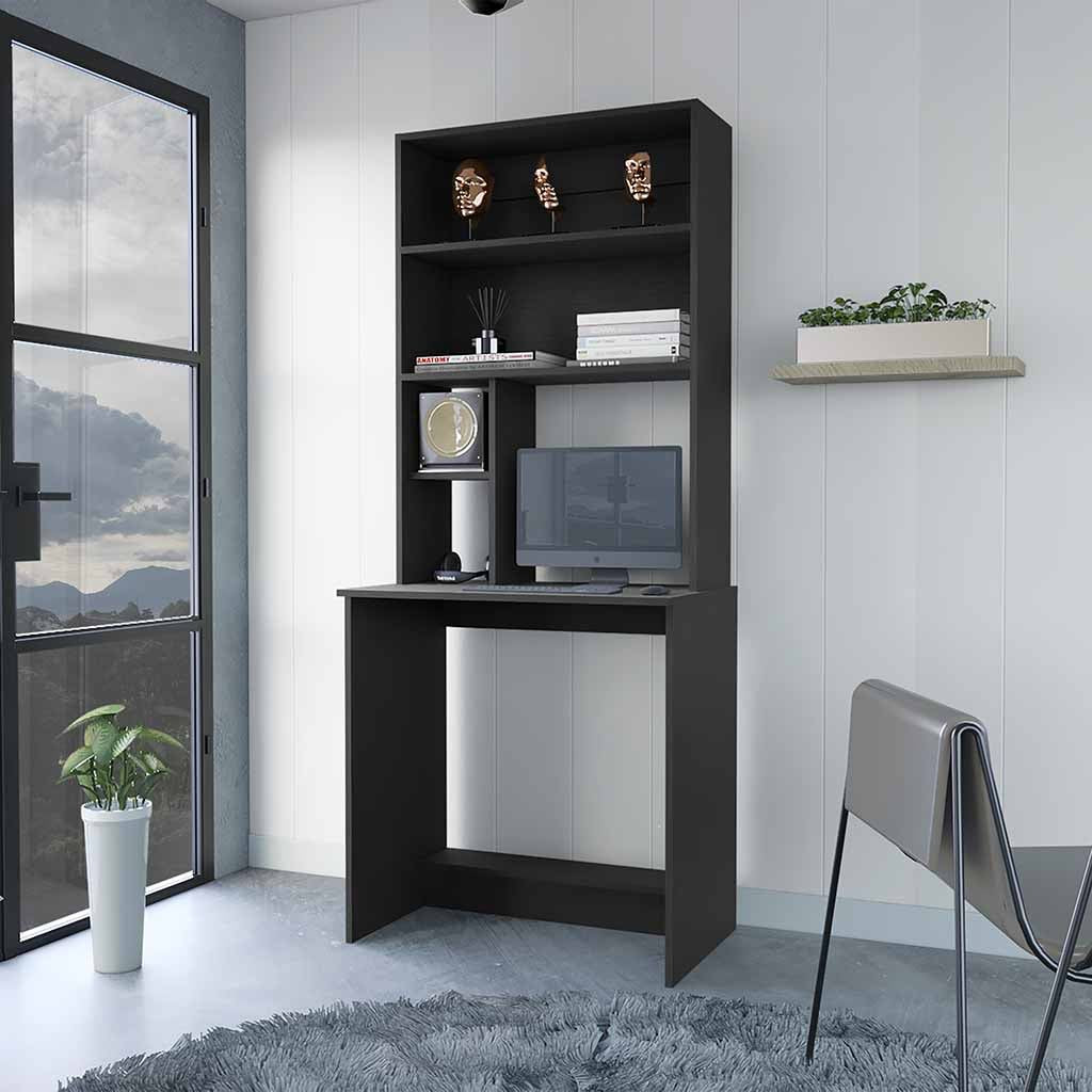 Simple; practical; elegant; light; and very modern; these words describe this beautiful office or home desk; which is very ergonomic and does not take up more space than necessary; perfect for small but stylish places; excellent for people looking for cleanliness and simplicity in a product. It has two storage drawers where you can accommodate books; notebooks; files; and more; also has two small shelves to accommodate accessories you want to have on hand for greater efficiency. Black Finish